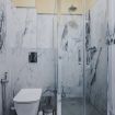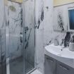 A modern bathroom with shower and washing machine